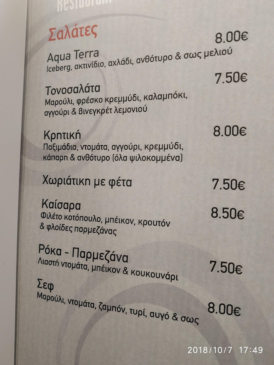 The menu at Aqua Terra features a delightful array of dishes, perfect for any occasion, whether you're savoring a serene cup of coffee or indulging in a sumptuous dinner. Customers rave about the delicious crepes and homemade sweets—don't miss the remarkable waffle paired with ice cream!